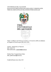 Wajntraub, Joaquín Marcos (2025) La influencia del Partido de la Justicia y el Desarrollo (AKP) en la adhesión de Turquía a la Unión Europea (UE) (2010-2020). Tesis de Licenciatura, Universidad del Salvador.