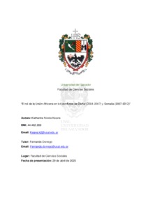 Keane, Katherine Nicole (2025) El rol de la Unión Africana en los conflictos de Darfur (2004-2007) y Somalia (2007-2012). Tesis de Licenciatura, Universidad del Salvador.