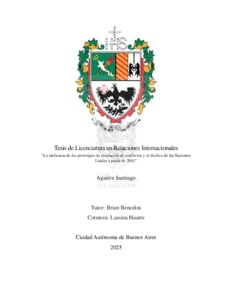 Aguirre, Santiago (2025) La ineficacia de los prototipos de resolución de conflictos y el declive de las Naciones Unidas a partir de 2001. Tesis de Licenciatura, Universidad del Salvador.