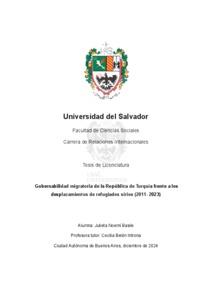 Basile, Julieta Noemí (2024) Gobernabilidad migratoria de la República de Turquía frente a los desplazamientos de refugiados sirios (2011- 2023). Tesis de Licenciatura, Universidad del Salvador.