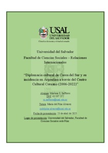 Saffores, Maitena S. (2025) Diplomacia cultural de Corea del Sur y su incidencia en Argentina a través del Centro Cultural Coreano (2006-2022). Tesis de Licenciatura, Universidad del Salvador.