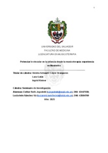 Jogodnik, Esther Ruth y Sánchez Sá, Lucía Inés (2025) Potenciar lo vincular en la infancia desde la musicoterapia : experiencia en Musineira. Tesis de Licenciatura, Universidad del Salvador.