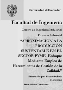 Bobbio Mandolino, Franco (2024) Aproximación a la producción sustentable en el sector PyME : enfoque mediante empleo de herramientas de gestión de la calidad. Tesis de Licenciatura, Universidad del Salvador.