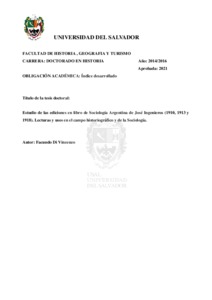 Di Vincenzo, Facundo (2021) Estudio de las ediciones en libro de Sociología Argentina de José Ingenieros (1910, 1913 y 1918) : lecturas y usos en el campo historiográfico y de la sociología. Tesis de Doctorado, Universidad del Salvador.