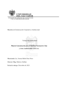 Díaz Pérez, Jimena Mabel (2023) Plan de comunicación para el Instituto Nacional de Cine y Artes Audiovisuales (INCAA). Tesis de Maestría, Universidad del Salvador.